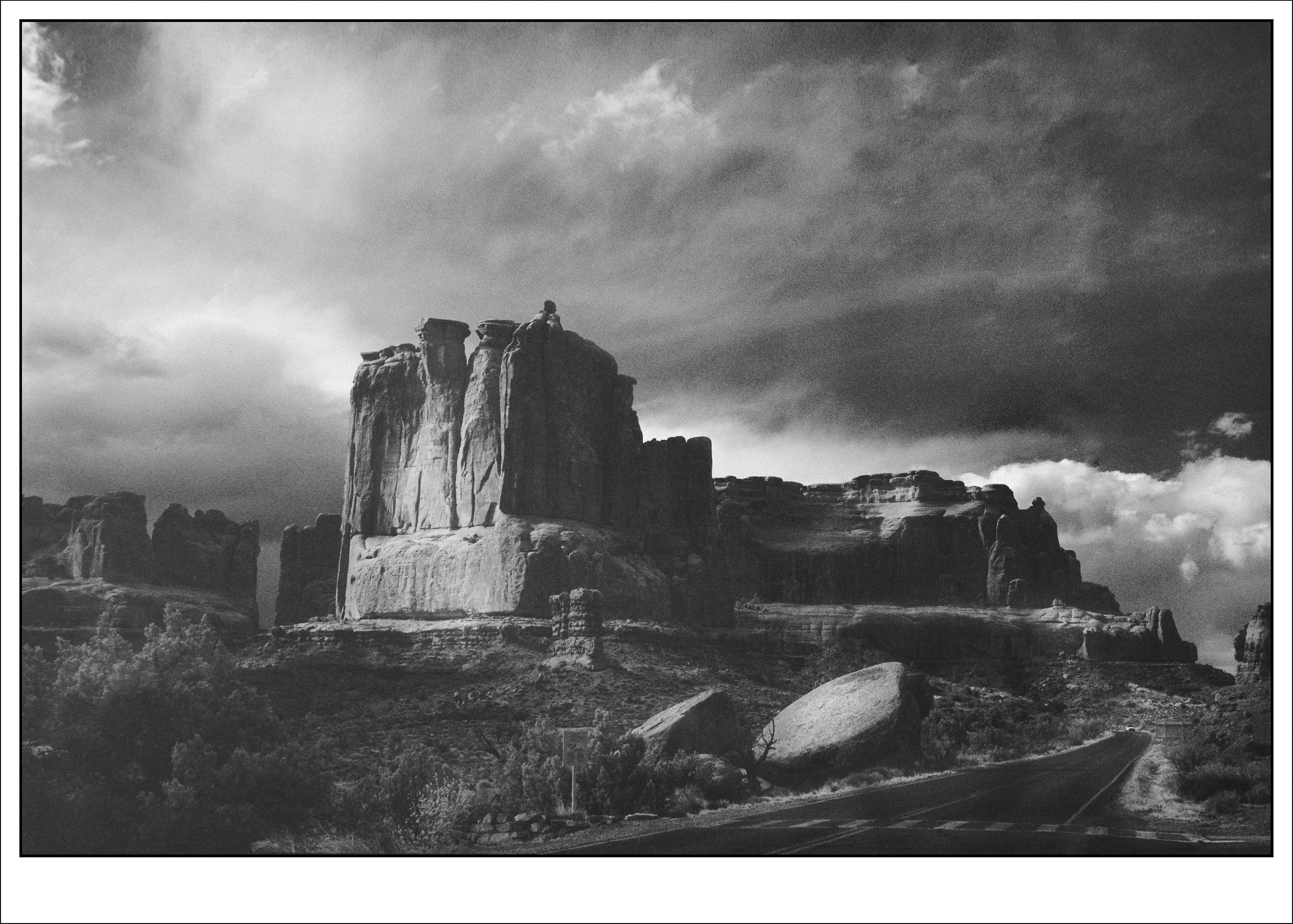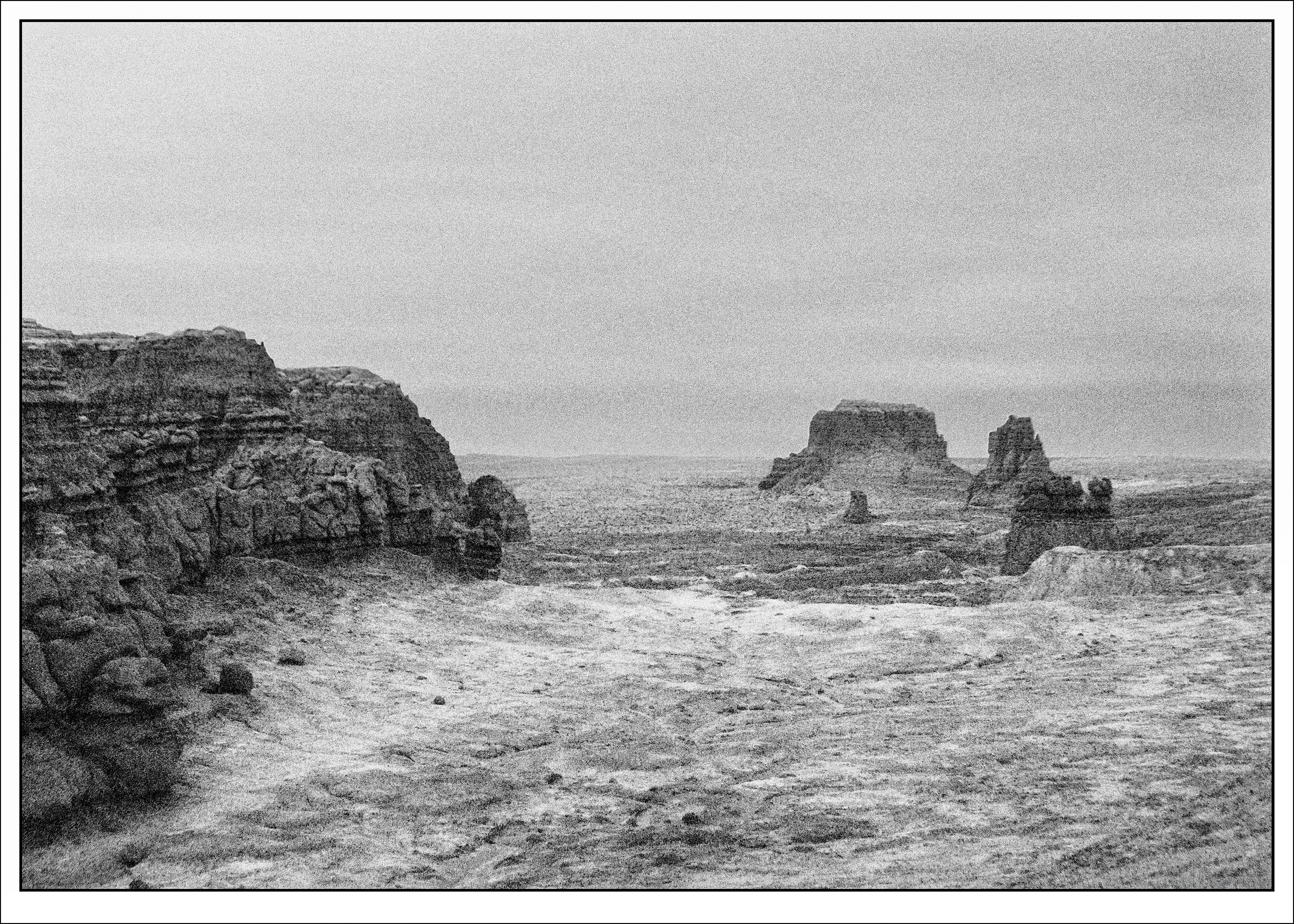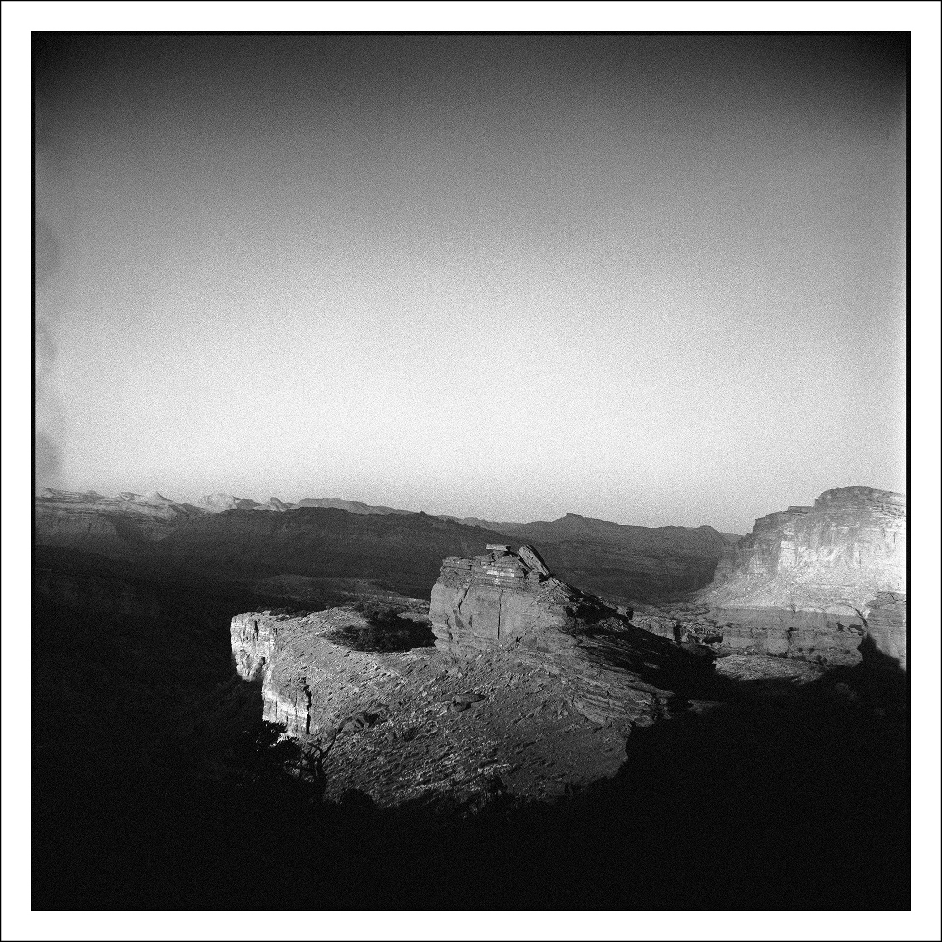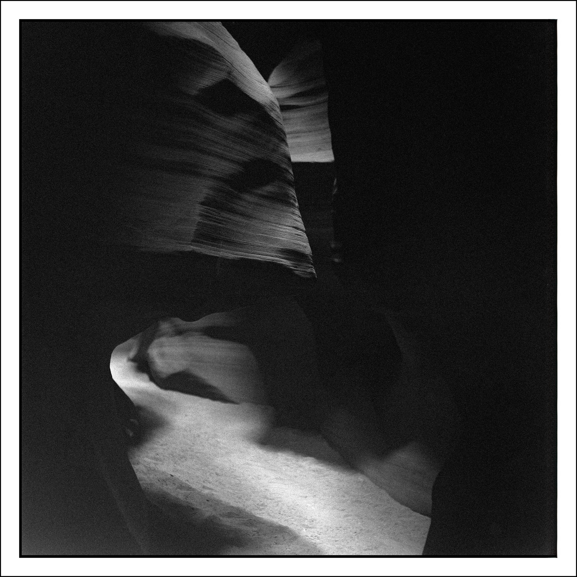 In English: This project was born in 2014 during a two‑week journey through the vast landscapes of the American Southwest, where the old world’s historic churches, manors, and castles are absent, yet countless natural sanctuaries take their place. The region is almost uninhabited—its silence and openness create a space where one can set aside the tangled thoughts of everyday life and simply be present. The landscapes captured on black‑and‑white film are meditative and timeless, reflecting my inner search and desire for clarity. Each frame is a dialogue between nature and myself—moments where technique recedes and only presence remains.